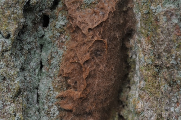 Diese schwammartig aussehenden Gelege waren für diese Schmetterlingsart auch namensgebend.